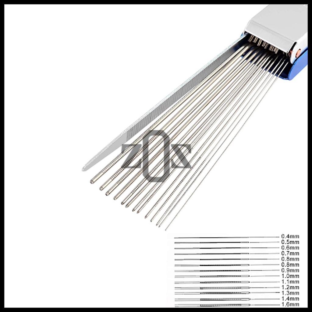 -The depth of string slots of thirteen round files: 0.4mm, 0.5mm, 0.6mm, 0.7mm, 0.8mm, 0.8mm, 0.9mm, 1.0mm, 1.1mm, 1.2mm, 1.3mm, 1.4mm, 1.6mm. Aluminium carry case size: Approx: 102mm x 23mm x 12mm/ 4.05″ x 0.9″ x 0.47″. 100% brand new, never used, testing is fine.