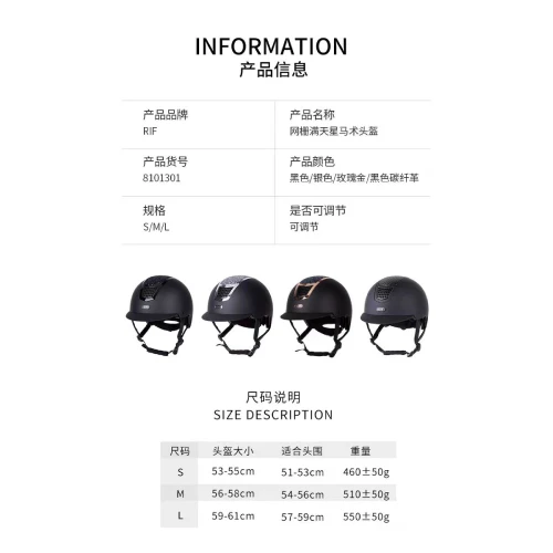 1PC x Helm Helmet RIF Grid Stars Horse Riding Berkuda Equestrian HH21 Black