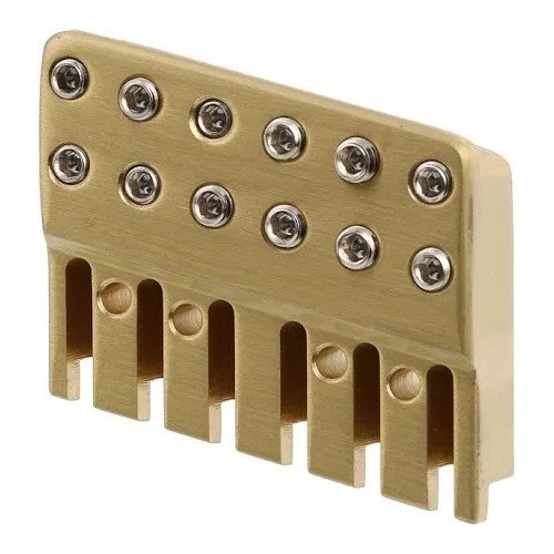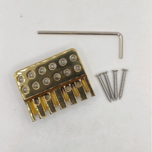 -The headless guitar string lock is made by CNC from high-quality brass and is electroplated with gold on the surface.