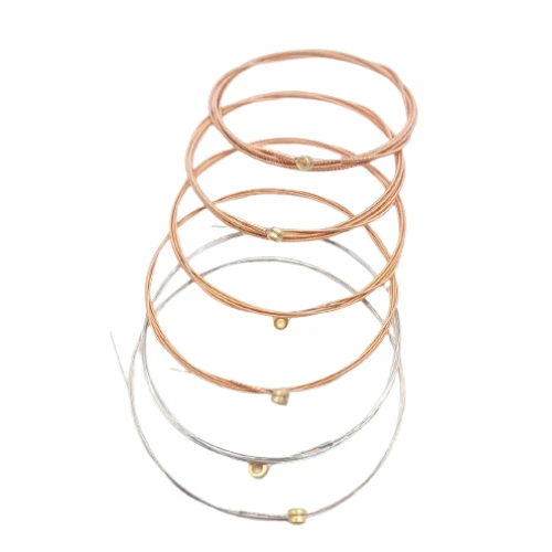 #1-#2 string material: steel; #3-#6 string material: Interior wire : hexangular steel core; Exterior wire: Phosphor bronze